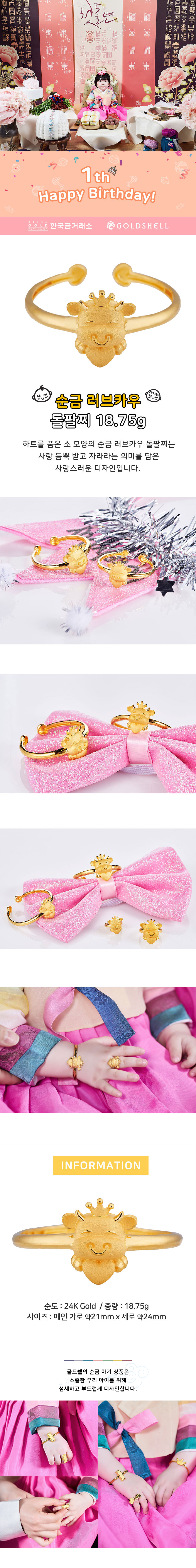 순금 러브카우 돌팔찌 18.75g